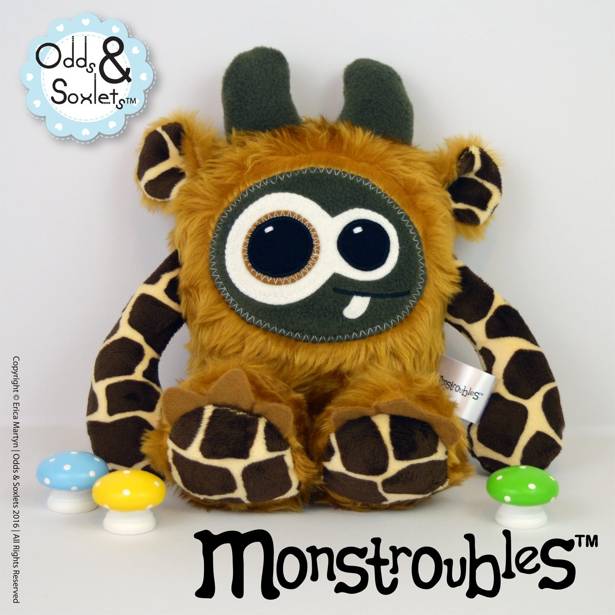 Published February 3, 2016 at 1200 × 1200 in Monstroubles-Batch-04-6b-2016-006-Biddy-Honey-Fur-Giraffe-Plush-Odds-and-Soxlets-Copyright-Erica-Martyn-PREVIEW-FULL
