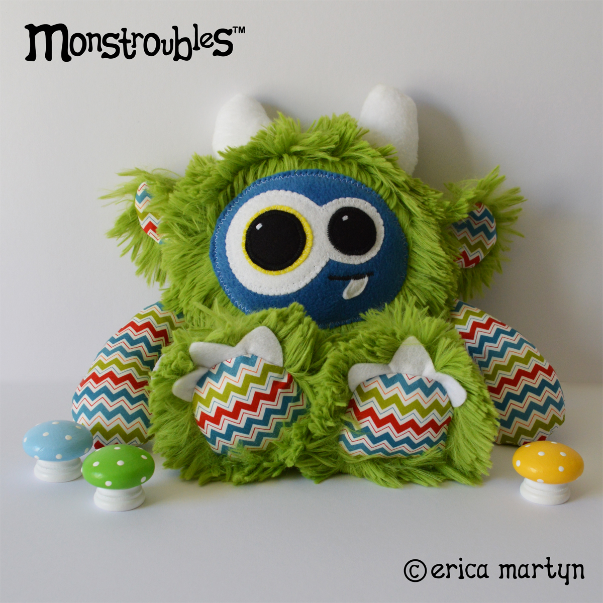 Monstroubles-Batch-6-6b-2014-007-Green-Chevron-Monster-Odds-and-Soxlets-Copyright-Erica-Martyn-PREVIEW-Large