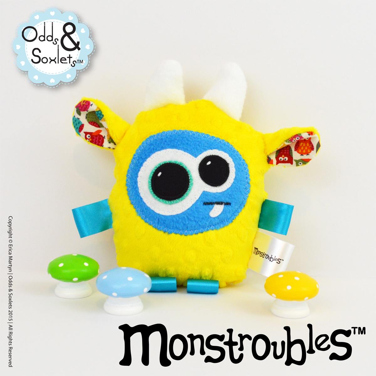 Monstroubles-Batch-3-6a-2015-003-Yellow-Blue-Owls-Odds-and-Soxlets-Copyright-Erica-Martyn-PREVIEW